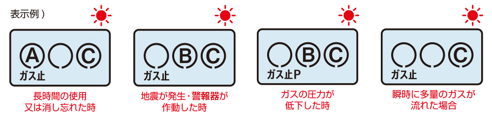 ガス器具の消し忘れなど長時間使用した場合 - 地震などの強い揺れを検知(表示BC)