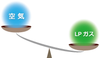 LPガスは空気よりも重く、漏れると低いところや物かげにたまる性質があります