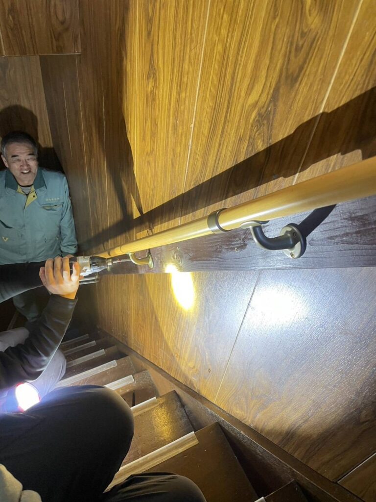 2026.02.10 ブログ 手すり取付工事 向井燃料の社員宅(築60年)の階段は昭和の家あるあるな「急こう配」 そのため家族が滑って怪我をしてしまい、急遽手すりを取り付けることになりました。 Before after 作業中「下地がどこにあるかわからない」というアクシデント(!)もありましたが😂 無事取り付け終了👍 これで安心して階段の上り下りができるようになりました😉 🍎